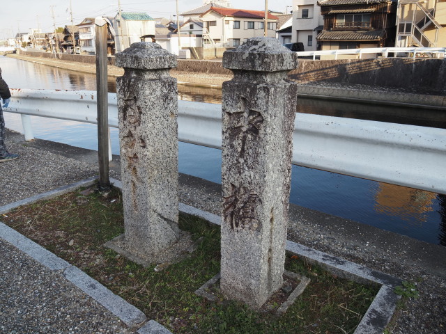 勢田川に架かる中橋の旧親柱